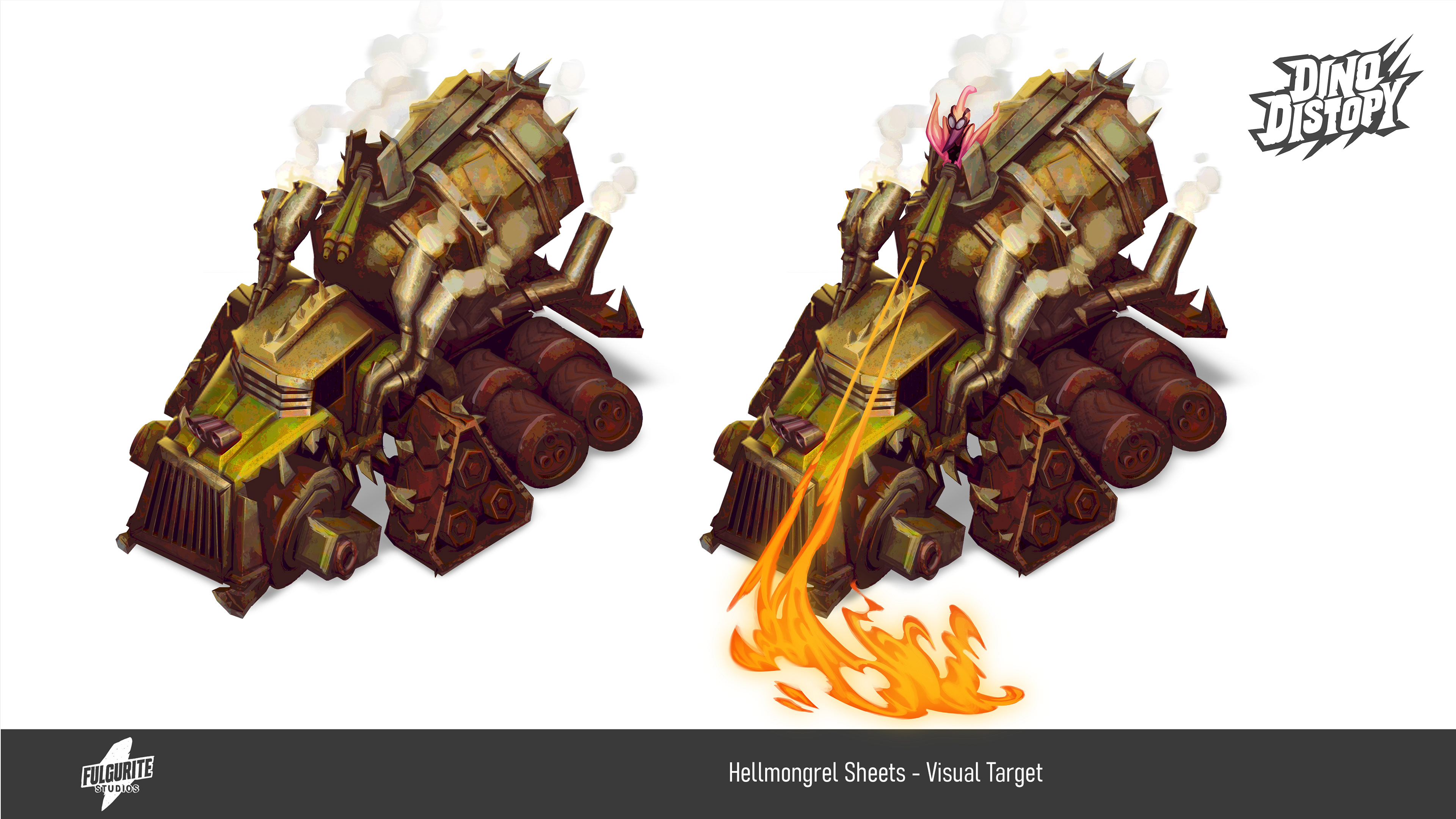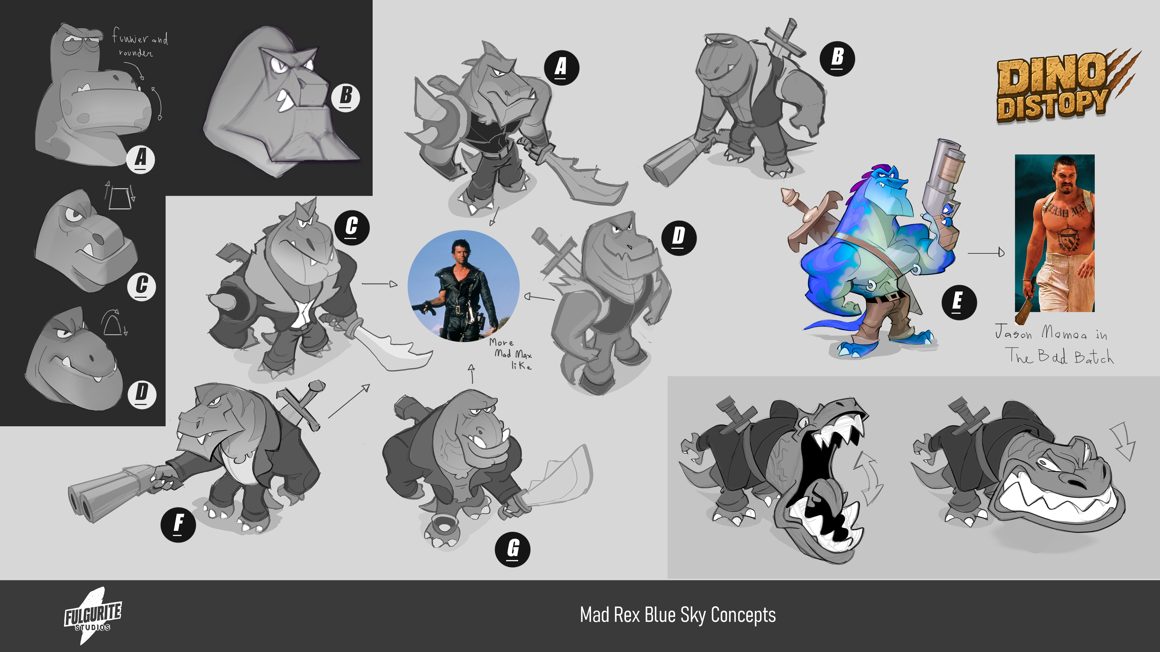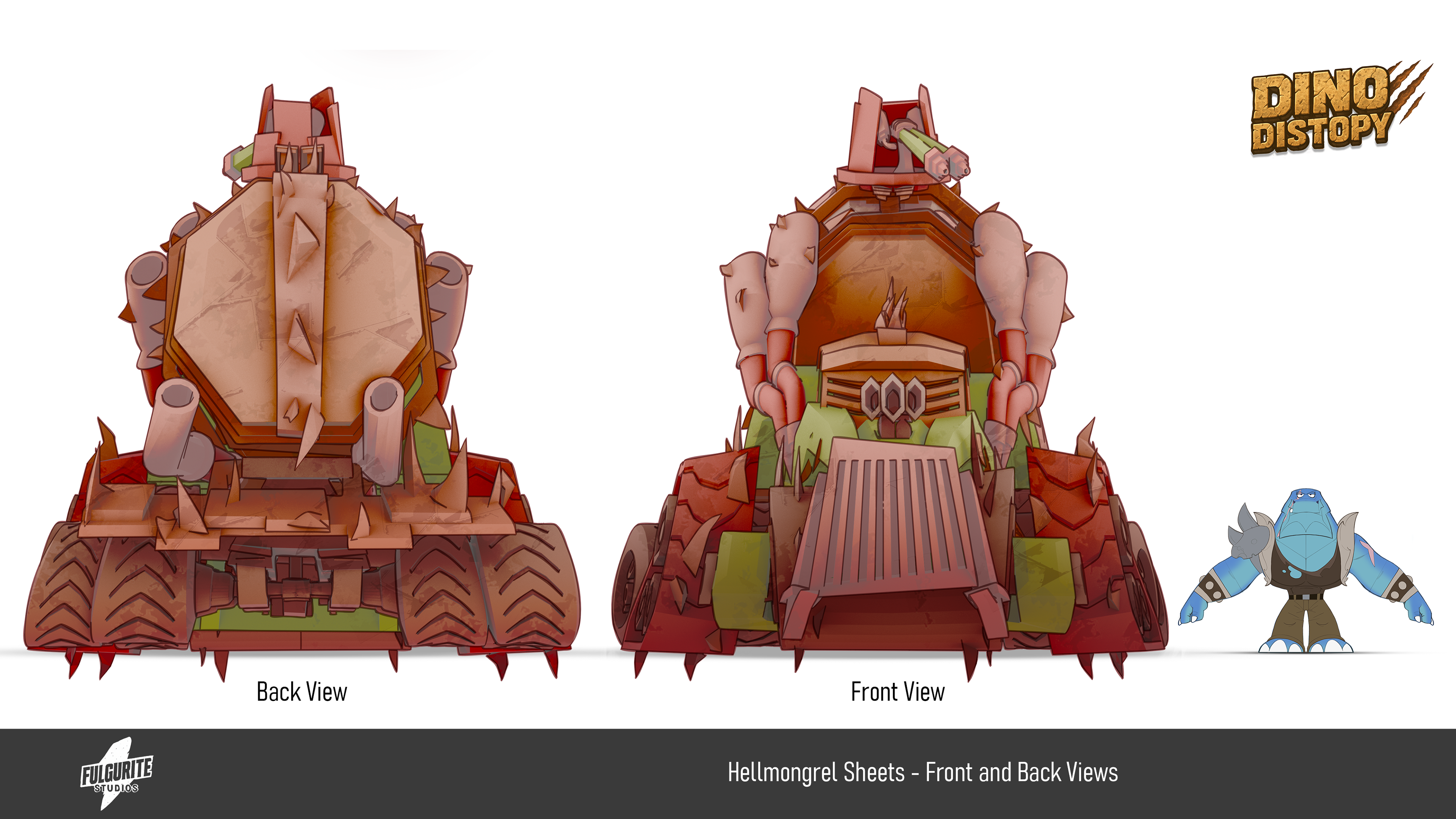 Dino Distopy Project - visual development & world building. This section brings together a selection of artworks created throughout the development of my fictional mobile game project, Dino Distopy, designed specifically to guide my students during the final project classes of my course Art and Design for Mobile Games. Dino Distopy is an isometric MOBA set in a post-apocalyptic world where anthropomorphic dinosaur warriors fight for survival amid landscapes devastated by global cataclysms. Blending a junkpunk aesthetic with the energy of a mobile party game, the project combines action, humor, strategy, and chaos in a setting inspired by Mad Max, where every territory, vehicle, and hero carries its own story of resilience. More materials will be posted soon, but some concept arts, model sheets, and illustrations are already available here.